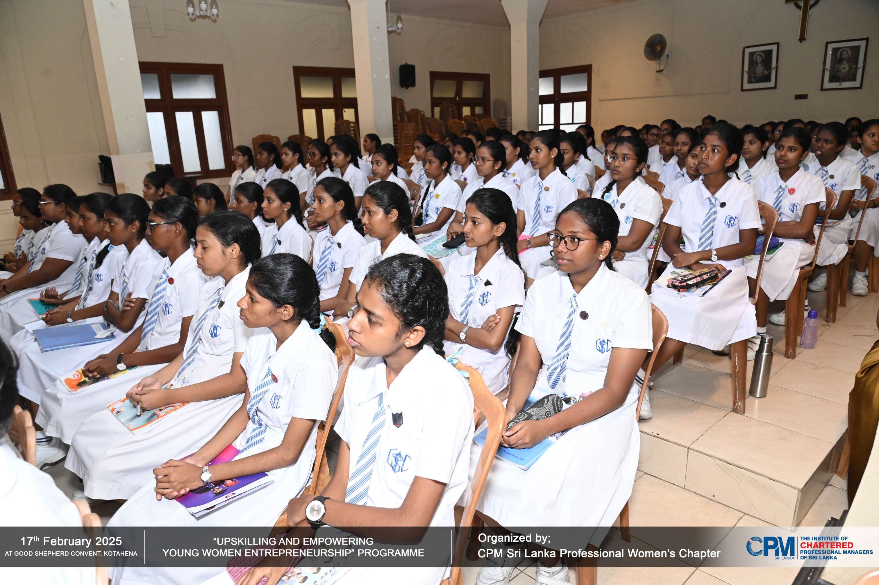 The CPM Sri Lanka Professional Women’s Chapter successfully organized the "Upskilling and Empowering Young Women Entrepreneurship" programme for Grade 12-13 students of 𝐆𝐨𝐨𝐝 𝐒𝐡𝐞𝐩𝐡𝐞𝐫𝐝 𝐂𝐨𝐧𝐯𝐞𝐧𝐭, 𝐊𝐨𝐭𝐚𝐡𝐞𝐧𝐚, 𝐨𝐧 𝟏𝟒𝐭𝐡 𝐅𝐞𝐛𝐫𝐮𝐚𝐫𝐲 𝟐𝟎𝟐𝟓, 𝐟𝐫𝐨𝐦 𝟖.𝟎𝟎 𝐀𝐌 𝐭𝐨 𝟏.𝟎𝟎 𝐏𝐌 at the school premises. 🏫🎓💼