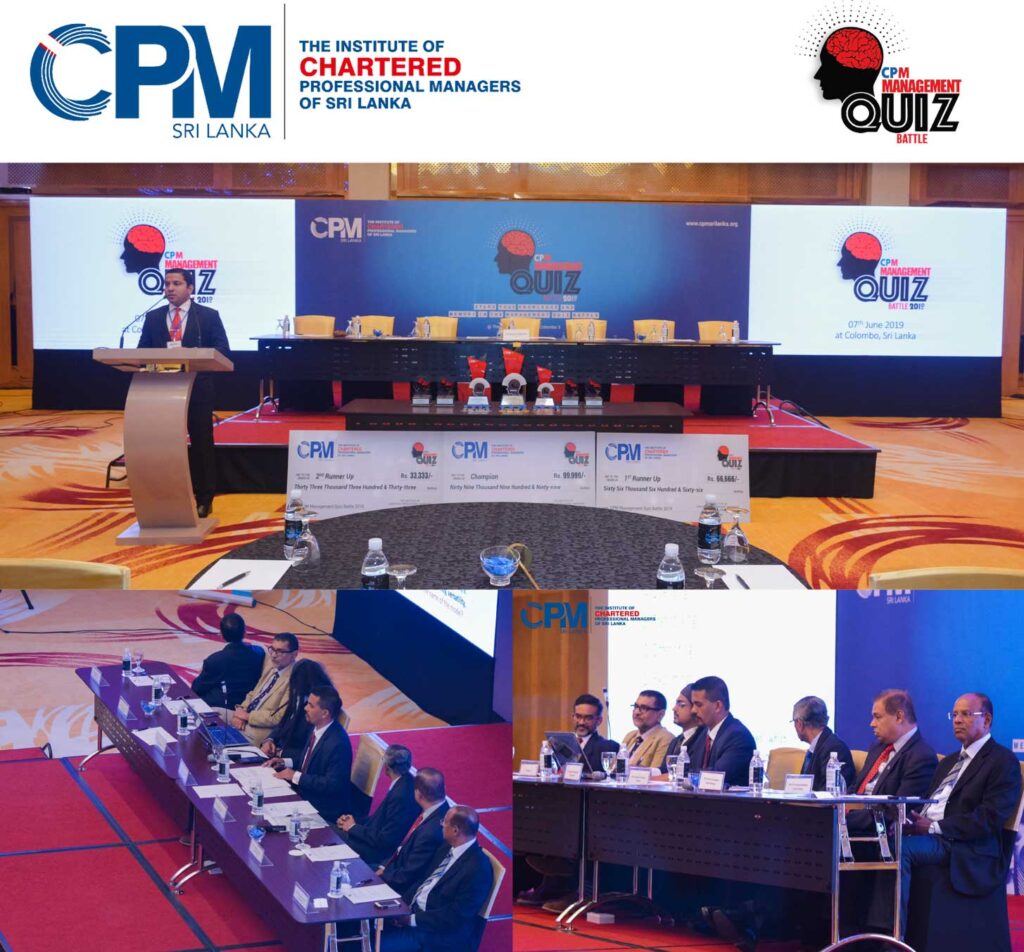 With the intention of creating a fine platform for the purpose of testing the competency level of Corporate Managers, The Institute of CHARTERED Professional Managers of Sri Lanka has organized “CPM Management Quiz Battle 2019” recently.