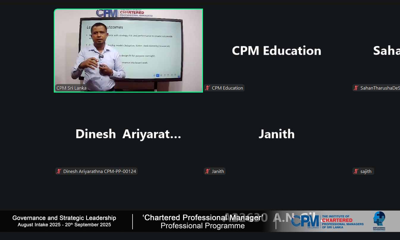 The Institute of Chartered Professional Managers of Sri Lanka (CPM Sri Lanka) is organizing the fifth workshop for the August intake of the Professional Strategic Management Level (PSML) on: